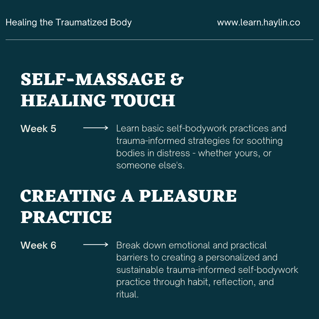 This program is designed and facilitated by me - Haylin Belay. I'm a seasoned sex educator, bodyworker, and health promotion professional with a focus in reproductive justice and intersectional, trauma-informed strategies for healing and care.